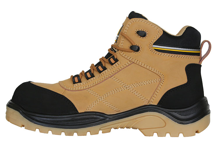 Nubuck leather 1.8~2.0mm with colored rubber stripes for high visibility.